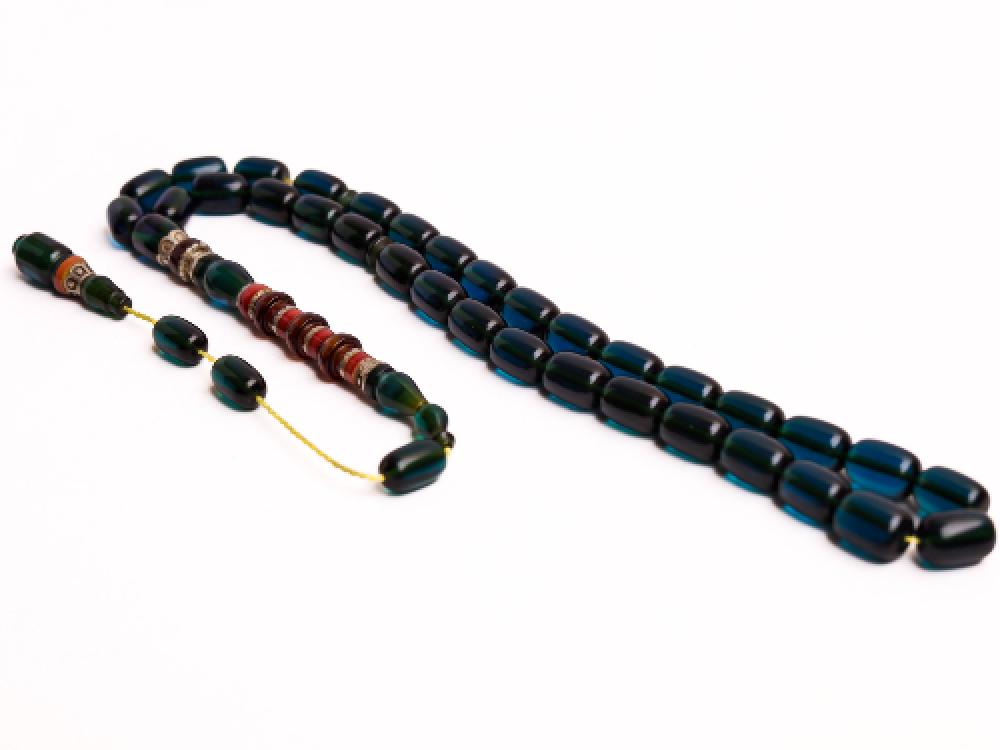 كما أن الخرزات ذات اللون الازرق الداكن تمنح السبحة حضورًا مميزًا ووقارًا يليق بذوق عشاق السبح الفاخرة.