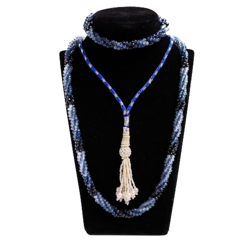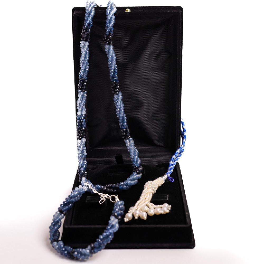 ارتقي بإطلالتك مع هذا العقد الفريد المصنوع من أحجار كريمة طبيعية مختارة بعناية، تجمع بين جمال الزفير الأزرق لتمنحك قطعة نابضة بالألوان والطاقة الراقية. تصميمه متعدد الطبقات ولمعته الساحرة يجعلان منه إضافة فاخرة لأي مناسبة.