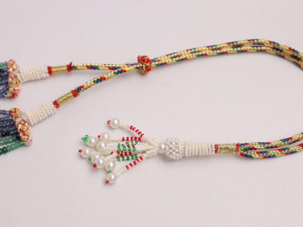 يتميز هذا العقد بتدرجات لونية رائعة تمتد عبر خرز مصقول بعناية ليعكس جمال الأحجار الكريمة الطبيعية. يأتي التصميم بشكل طويل مزين بلمسات مبهجة وتفاصيل خرزية متقنة، إضافة إلى نهاية متدلية تمنح القطعة جمالًا وحضورًا لافتًا.